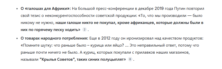 1. Тотальная деградация образования; 2. Обнищание населения; 3. Уничтожено наукоёмкое производство, мы, сука, даже гвозди выпускать не можем; 4. Уничтожены десятки тысяч предприятий; 5. Уничтожено авиастроение; 6. Уничтожено станкостроение; 7. Уничтожено автомобилестроение; 8. Уничтожено компьютеростроение; 9. Монетизация льгот; 10. Вокруг одни торгаши и спекулянты, у которых работа заключается в том, чтобы тебя наебать; 11. Микрокредитные организации; 12. Отсутствие какой-либо дискуссии в обществе по насущным проблемам; 13. Атомизация общества, люди друг дружку уже откровенно ненавидят; 14. Россия по числу миллиардеров на 4 месте; 15. В России за потребительские кредиты люди должны 34.6 трлн рублей (ты, сука, представляешь, сколько это вообще?); 16. У нас уровень потребления мяса уровня РСФСР догнали только в 10-ых годах, за счёт дешевой курятины, а сейчас опять откат пошёл; 17. В СССР каждый год цены и тарифы снижались, а у нас растут; 18. У нас за чертой бедности живут 20 млн. человек, часть которых выписали из бедных за счёт новых методов рассчёта статистики.