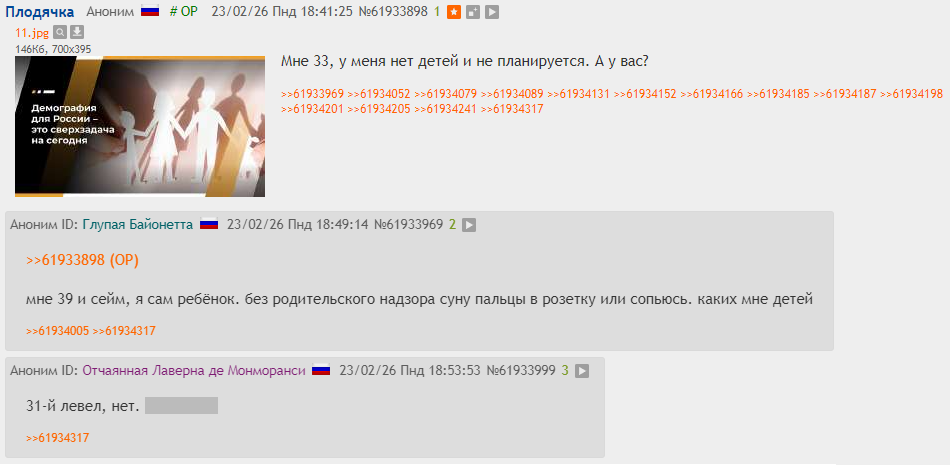 Либо это не имеет никакого эффекта, потому что поколение одно из малочисленных и многие все таки отказываются рожать. Либо тут псиопы с теориями заговара