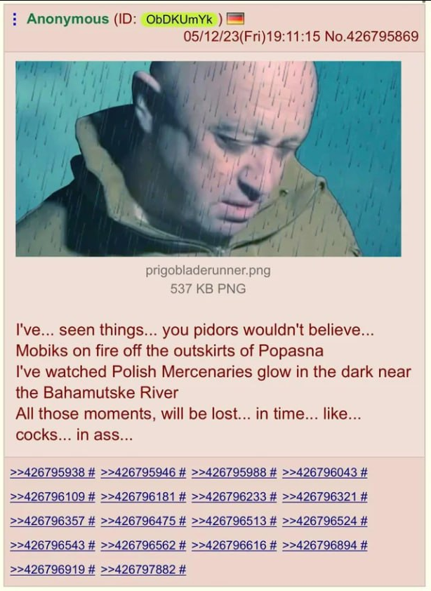 >>61939437 У него нет задачи говорить правду, у него задача говорить ПРИЯТНОЕ. Ну это как какой-нибудь лебронский политолог, который с 2022-го ежедневно вещает, что по его инсайдам из Кремля вот-вот и пыпстер ВСЁ. Погладить аудиторию. Копиум.