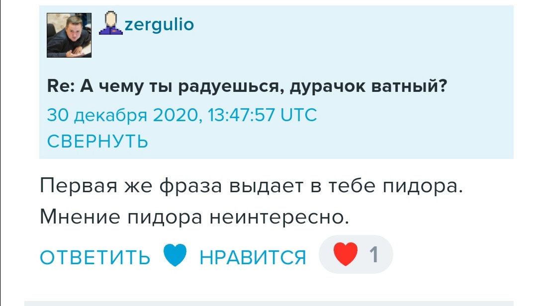 так он и здесь тоже гадит анонимно, ты не просто читаешь его годами, ты с ним споришь и ещё на нескольких ресурсах под другими никами - создаёт массовочку
