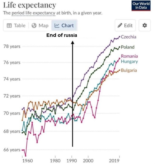 >>61956964 После распада соцблока чёто типа все показатели в большинстве его стран ебанули вверх, а не вниз. Конкретно СССР пришлось тяжелее, по очевидным причинам, но даже конкретно в РФ после трансформационных тягот девяностых наступило буквально лучшее десятилетие в истории этой страны. Строго говоря, я даже проявляю большую щедрость, выделяя как "тяжёлый" период прям все девяностые целиком.