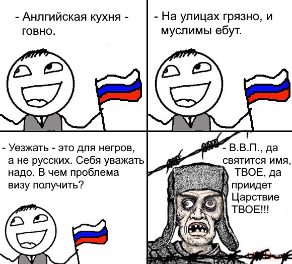 >>61957783 Что поделать, наследие после тоталитарной, промытой идеологией, параши, где все дружно говорили как надо или ехали в гулаг или дурку оно такое. Семьдесят лет зомбоящика про злой загнивающий запад всё еще дают плоды. Хотя исторически и культурно запад нам ближе всего. В 90е нужно было провести люстрацию всех чекистов, номенклатуры и прировнять большевизм к фашизму, тогда бы пыня в пятерочке сейчас охранником сидел и байки травил.