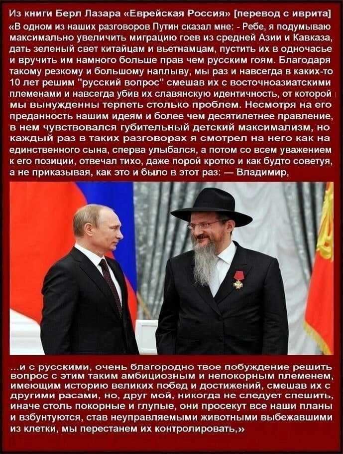 Еврейский олигарх Роман Абрамович, как пишет веб-сайт Федерации еврейских общин России (ФЕОР), считается «ведущим патроном» этой организации, которую возглавляет главный раввин России Берл Лазар. Последний является любавичским хасидом, которого направил в Россию в 1989 г. лидер неортодоксального течения «ХаБаД-Любавич» Менахем Мендл Шнеерсон. Владимир Путин не скрывает своих явных симпатий к ФЕОР и ее лидеру