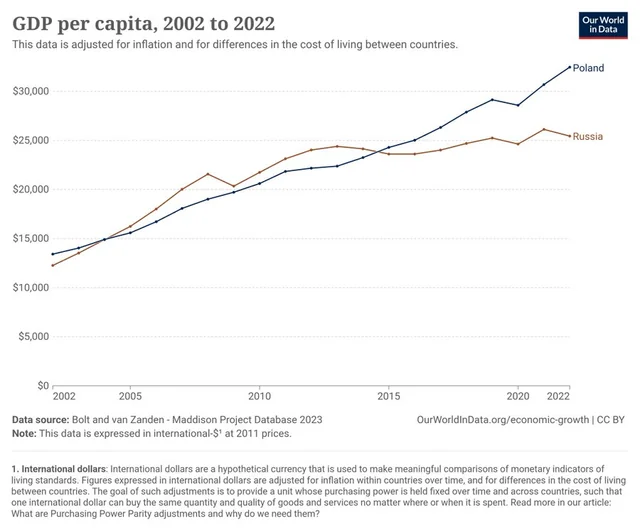 >>61958354 Она нормально реформировалась в 90е, в том-то и дело, и ВВП у нас рос примерно на уровне Польши. Надо было коррупцию устранять и тогда не было бы того препятствия росту с которым мы столкнулись в десятые. Ну и в войны нехер было лезть, ничего кроме отталкивания иностранных инвестиций они не дают.