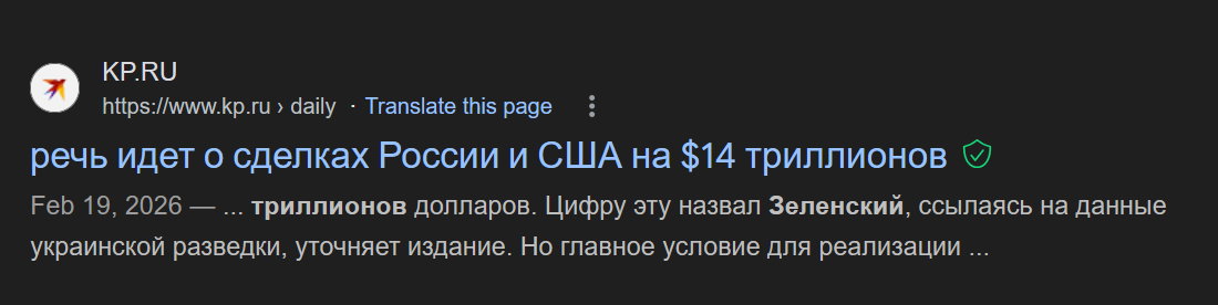 >>61958816 Зелупа лично говорил что США и Россия договорились о сделке на 14 триллионов и снятии санкций. Об этом говорили и в России и в США, в США без цифр. Это просто вопрос времени.
