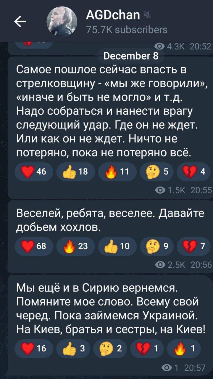 Отдельно отмечу, что никто из зрителей российских либеральных каналов не считает Дугина философом Пыни. В среде российских либералов над Дугиным смеются так же, как и смеются над другими зэтниками, которых Пыня регулярно разочаровывает. Это только хохлы живут в каком-то своем манямирке.