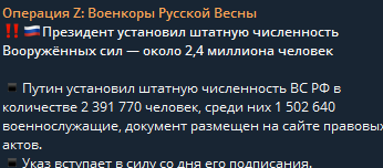 Если у нас штатная численность 2 391 770 человек, а самих военнослужащих 1 502 640, то нахуя выгребать зеков и отправлять студентов на нештурм? Если у нас так много военных, зачем агитировать студентов вступать в войска?