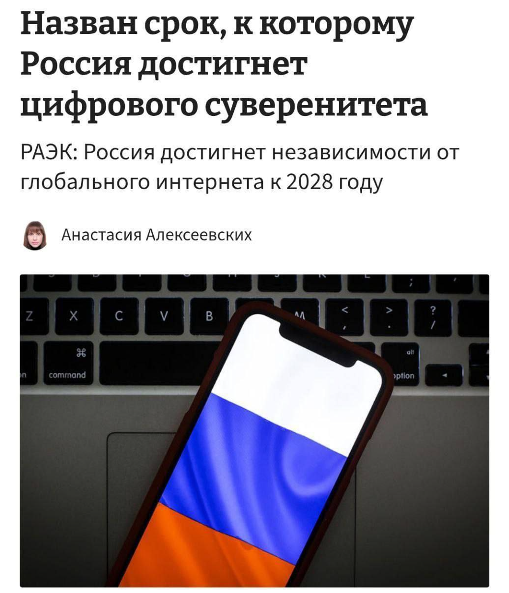 🇷🇺К 2028 году в России планируют окончательно сформировать автономный и изолированный от остального