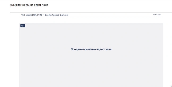 Московское шоу, назначенное на 2 апреля в зале «Москва», снято с продажи. Билеты почти разлетелись — и тут анонс просто исчез со страницы площадки. Покупателям возвращают деньги. Без объяснений, без переноса на другую дату.