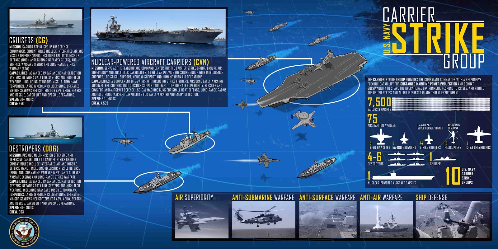Пробить АУГ намного сложнее чем пробить защиту города, это намного меньшая площадь, плюс мобильность, плюс максимально современные техи, каждая такая АУГ полностью контролит сотни километров вокруг себя и подобраться к ним практически невозможно. Все что подползает к берегу хуярят с упреждением, все что пытается подлететь сбивают к хуям собачьим. Подлодки и прочая дичь так же контрится специальными литаками и другими подлодками.