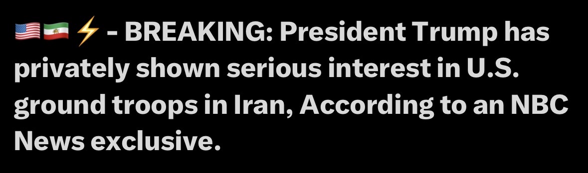 Очередная проверенная инфа в треде >Согласно эксклюзивному сообщению NBC News, президент Трамп в частном порядке проявил серьезный интерес к сухопутным войскам США в Иране