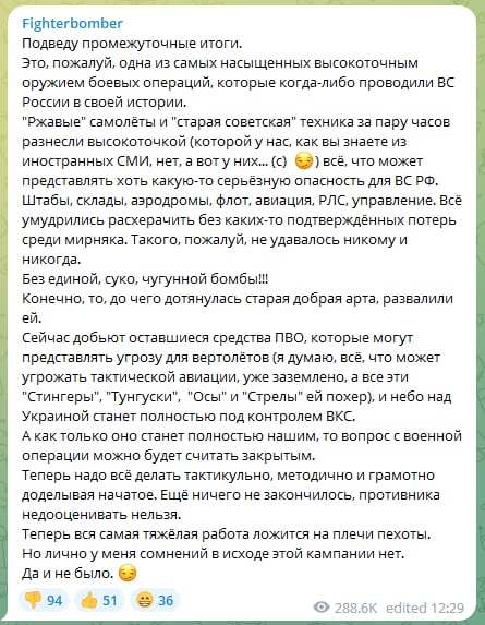 Не читал тредов 40. У Наки и прочих много бубнежа, а акцент на малозначимых событиях по типу убийства лидера. Хотелось бы узнать именно о военных успехах, которые в перспективе позволят безнаказанно бомбить иран до полного разложения государственности