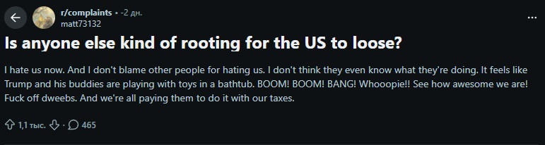 >>62061416 (OP) > превращение Ирана в демократическое государство после нынешнего конфликта Ой вей! Что будет с либерашками реддитскими, когда они поймут, что Штаты наоборот поддержат наиболее ебучий религиозный сапог, дабы он ебал население, чтобы оно не мешало нефтеродицу прорабатывать, я даже не представляю. Может, случится чудо и параллельно с этим поймут, что Штатам нужны демократия и цивилизация лишь у себя, остальных они хотят видеть Сириями полуразъёбанными и зависимыми от США.