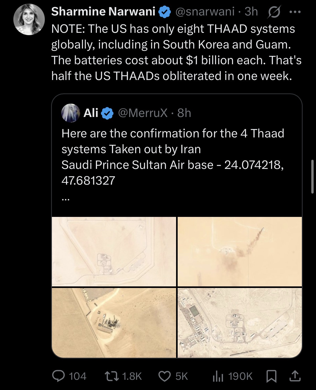 Уничтожена современная РЛС на базе Эд-Дафра, ангары для технического обслуживания и хранения беспилотников MQ-9, самолета U-2 и комплекса "Пэтриот".