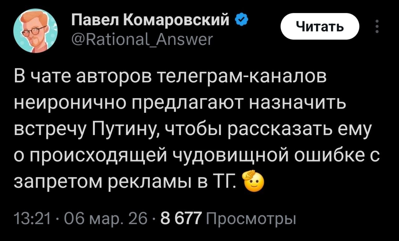 А ловко это РКН придумал. Сначала заставил этих лохов предоставить полные данные и повесить позорную плашку, а теперь взял их за яйца и будет садить на бутылку тех, кто сдеанонился, но продолжает торговать в ТГ.