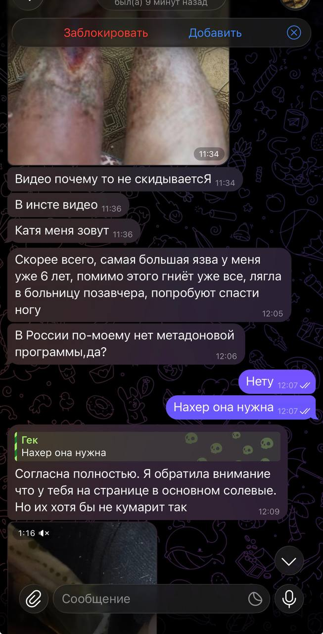 >>62068879 Просто проблема в том, что у нас системная наркофобия - прямой результат наркофобной пропаганды нашего правительства, никто не считает, что наркозависимые нуждаются в лечении и поддержке. Если кто-то хочет употреблять - это его право, не нужно его сажать в тюрьму. Если кто-то хочет - ему нужно помочь, но без тупого морализма и осуждения. У нас это невозможно.