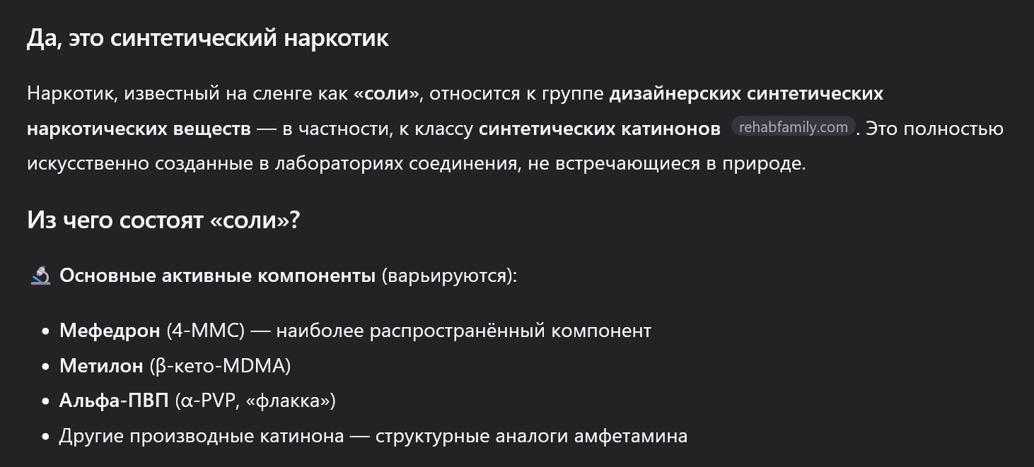 От солей и мефедрона нет никакой заместительной терапии. Шансы на ремиссию минимальные, хуже чем у любого фентанилового наркомана. Нет и нормальных лекарств для хотя бы какой-то минимизации вреда. Последствия от употребления такого типа веществ, при этом, в отличии от опиатов - перманентные. Героиновый торчок может сохранить голову даже после 20 лет на игле. Солевой наркоман становится дурачком до конца жизни уже через пару лет.