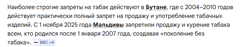 Если взять какой-нибудь Катар или ОАЭ, то там медианная продолжительность жизни мужчины 80 лет. Там в принципе не пьют и не употребляют наркотики. Единственное - это кальяны. В РФ медианная продолжительность жизни мужчин 66 лет, кстати.