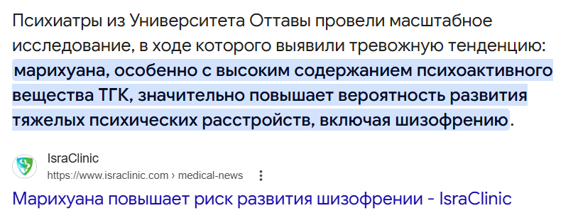 >а на следующий новый год уже по вене ставится во первых ты все остальные аргументы просто скипнул и именно черри пикнул тот, который подумал, что можешь оспорить. только это реально так и работает. трава является подводящим наркотиком к более тяжёлым. человек видит, что дунул траву, трава наркотик, с ним "ничего" особо не случилось, поэтому может подумать, что и с остальными наркотикам также будет.