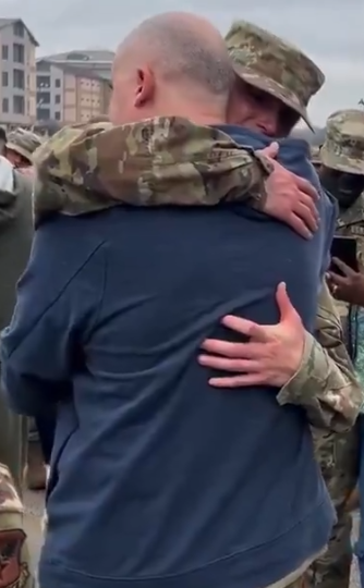 Челы в США учебку прошли и должны стоять. Приезжают друзья - родные и как только они прикоснуться - МОЖЕШЬ ДВИГАТЬСЯ. Да, вот такая вот хуйня.