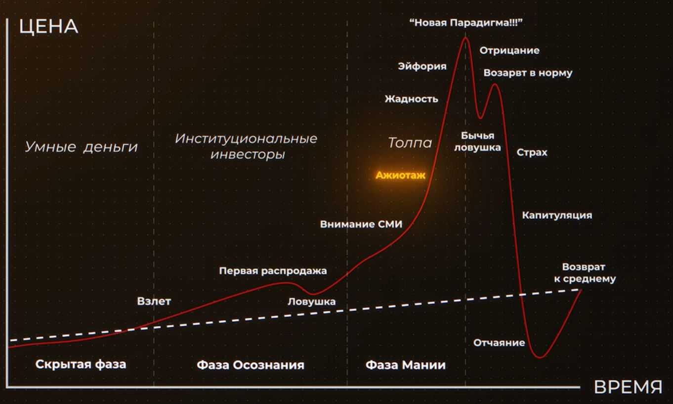 Сами по себе технологии никто не отменяет, как это было с пузырем даткомов, тут на графике это и показано в виде пунктира, а все что сверху это и есть пузырь.