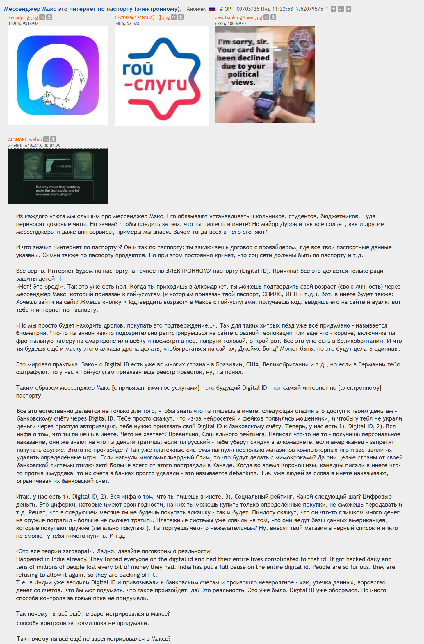 Таким образом мессенджер Макс [с привязанными гос-услугами] – это будущий Digital ID – тот самый интернет по [электронному] паспорту.