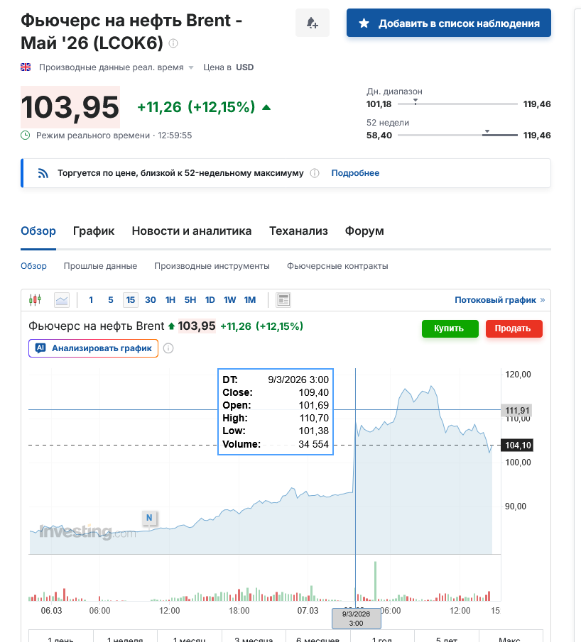 Цена на нефть через неделю упадет обратно до 80, а то и ниже. На фоне этого начнутся переговоры о перемирии (временном), но оно будет уже навсегда, так как Ирану не нужно больше получать обстрелы, а окружающим странам и США не нужны высокие цены на нефть. Война никому не выгодна, а значит продолжения не будет. Тем более что Ирану нужно время для доделывания своей бомбы.