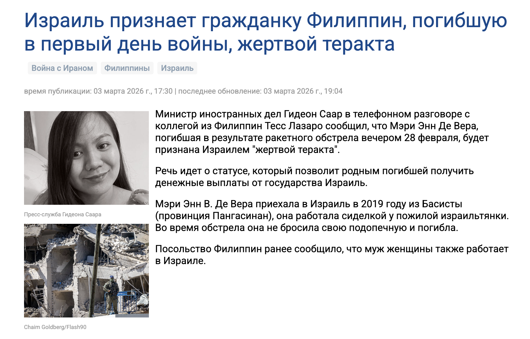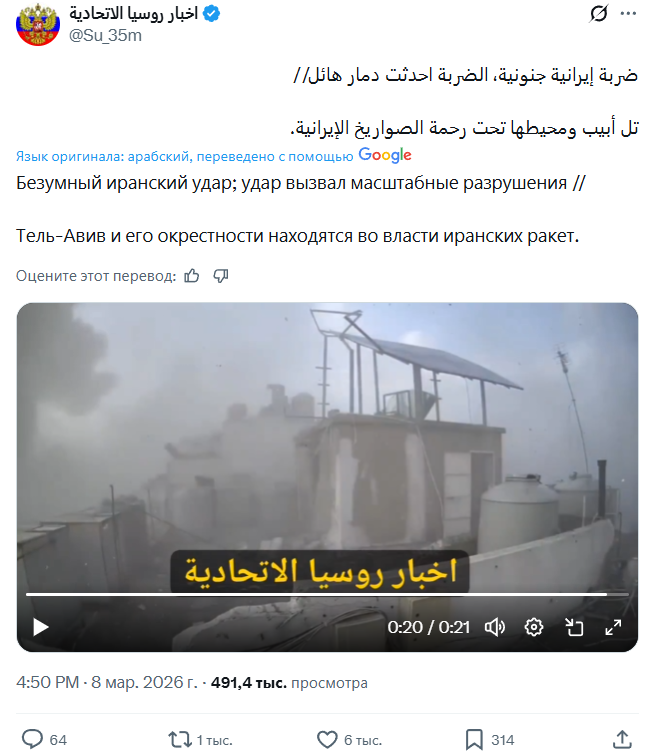 UPD: 2 арабов-строителей, умерли от полученных ранений, в результате иранского обстрела. ____________ 🎙Будь в курсе событий 🇮🇱 Подпишись на «Голос Израиля»
