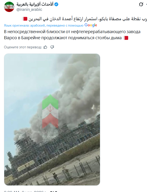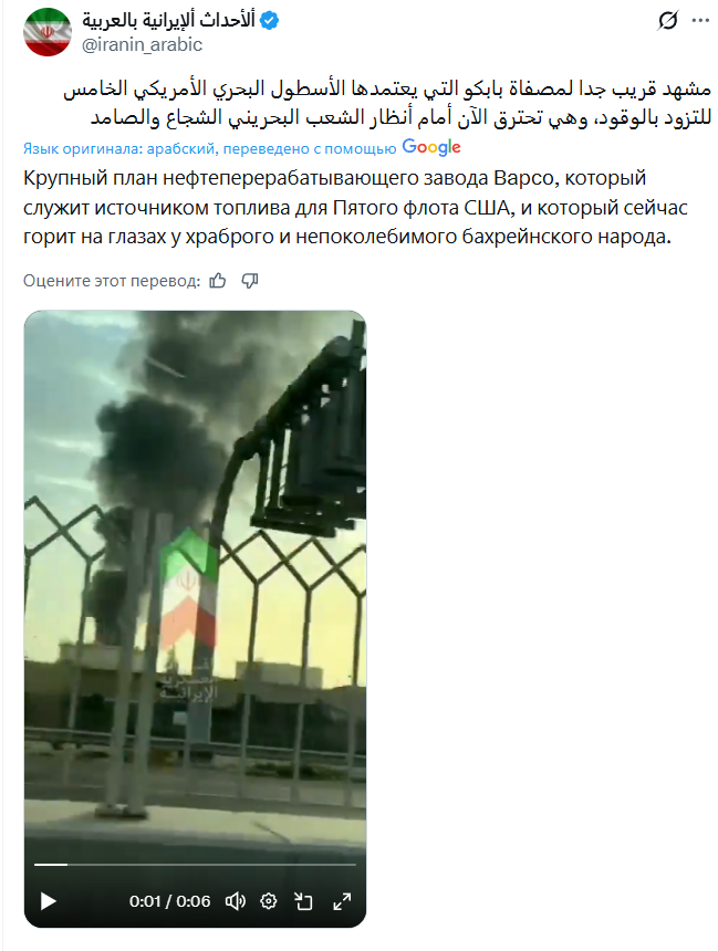 🇶🇦Более 30 человек получили ранения после того, как иранские дроны ударили по гражданским жилым кварталам в районе Ситра в Бахрейне этим утром, сообщили местные власти.