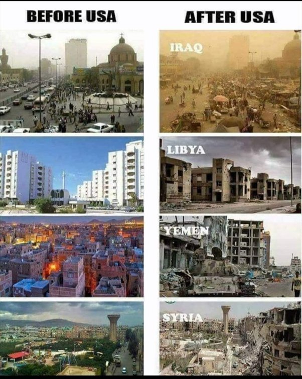 >>62080918 Ну, допустим. Режим реально плохой, и т.п. и т.д. Если вмешательство США ведёт к таким огромным жертвам, разрушению городов, нахуя лезть в эти страны? Ущерб от вмешательства гораздо выше, чем позволять режиму существовать дальше