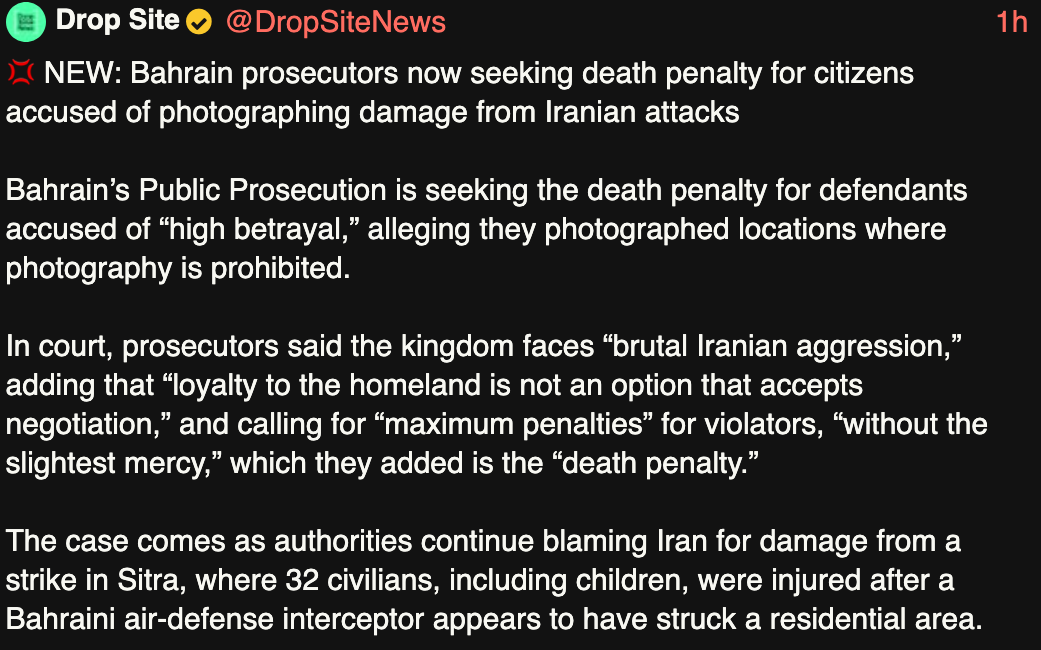 Бахрейн вводит смертную казнь для публикующих прилёты