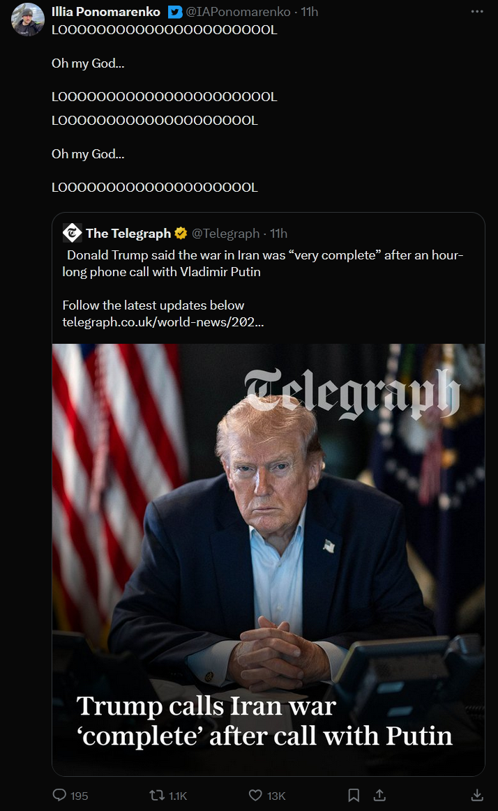 >>62087901 >Я один в ахуе с тейков что Трамп начал войну из-за Эпштейна или ради Израиля? Реально че несут люди, все что отупели или че