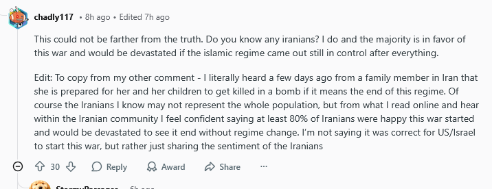 Читаю (((правильные))) комментарии с реддита, и угораю как же это похоже на наших обрыганов которые тоже писали что вот щас вся страна за них, скинут пыпу и побегут лахту бить.