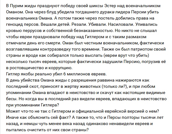 >>62087578 >Что ты несешь Не визжи, носатый. Я скрины кидал. У меня единственного удаляли посты с правдой про евреев, а потом начали по три пермача давать с причиной 'обрыжка'. Вы все только ржали и говорили, что правильно меня банят. >Причем тут позиция по Израилю? Потому что Лахта банит только антиизраильских. Не зря в списке путинистских материалов книги с правдой о евреях и книги аятоллы.