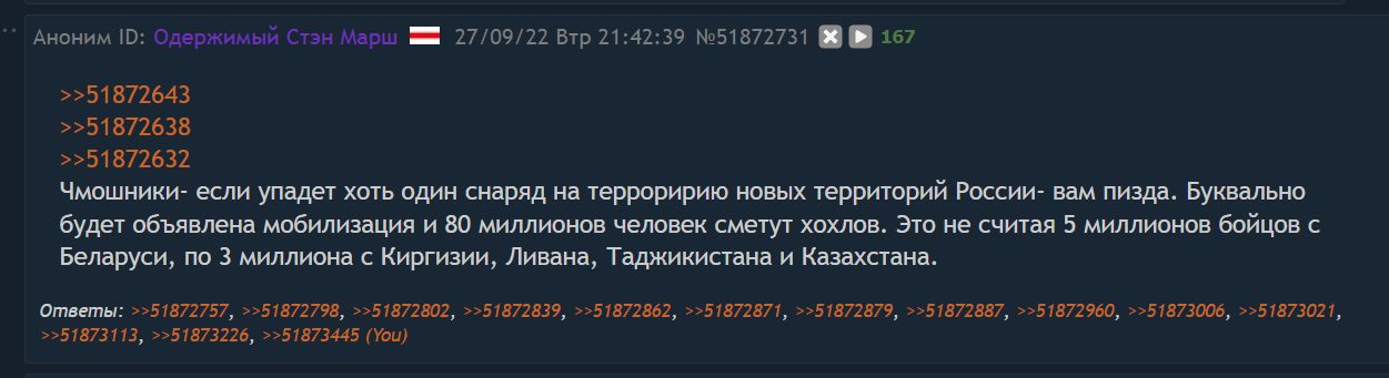 >>62090923 Ты просто в /wm/ не ходил. Они там болеют за Иран и уже победили США и Израиль много-много раз. Ну примерно как в первые дни/недели СВО. Я бы даже скрины делал, как делал их в СВО, но мне на иранскую движуху похуй.