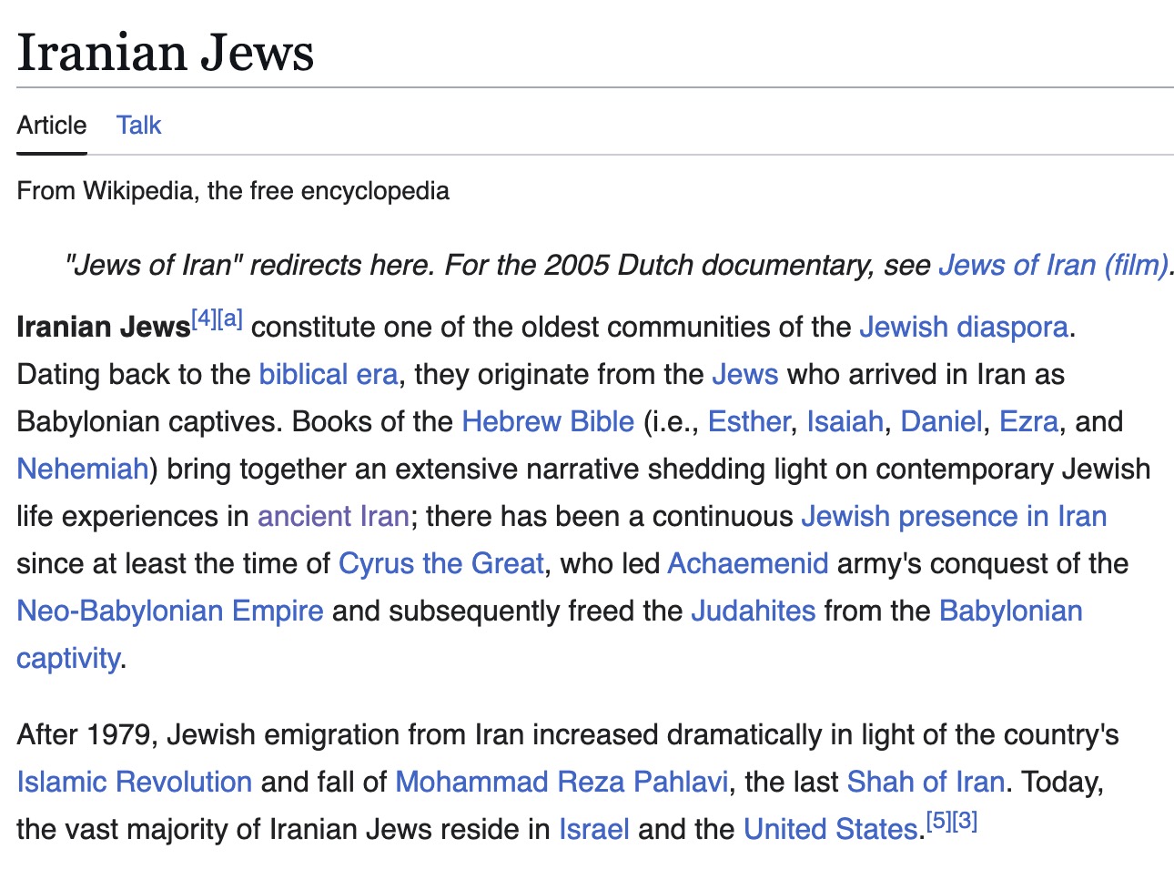 > После 1979 года еврейская эмиграция из Ирана резко возросла в свете Исламской революции в стране и падения Мухаммеда Резы Пахлави, последнего шаха Ирана. Сегодня подавляющее большинство иранских евреев проживает в Израиле и Соединенных Штатах.