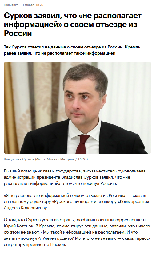 Сурков резко сьебался из рашки. Если даже этот дал деру с корабля, то дела совсем плохие.