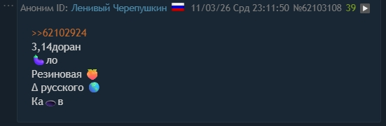 Аноним ID: Упрямый Капитан Вселенная12/03/26 Чтв 01:56:03№6210379423