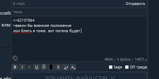 Россия в данный момент это кипящий котел, которому крышку запаяли нахуй. Были клапана, интернет например, где можно было бухтеть и понарошку копротивляться, которые стравливали давление внутри кипящего котла. Эти клапана прикрывают. Таким образом рано или поздно эти долбоебы надмозги получат, что весь котел рванет просто, и никому мало не покажется.