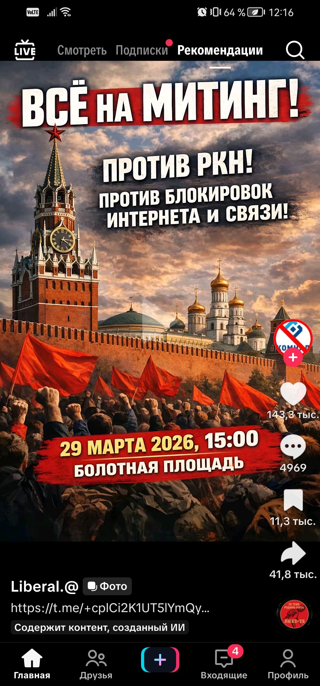 >>62140507 Модер из их телеграм канала раскидывал приглашения в различных Московских телеграм чатах, вот и нашёл. Утром у них было 350 фолловеров, теперь уже два раза больше и это лишь первый день. Видел как оттуда придумали тему с рекламой в тик токе и походу не прогадали, раз такой ажиотаж подняли лишь на одном тик токе. >>62140514 Не буду юлить, но то с какой скоростью стали отправлять бумаги на согласование пикета меня также насторожило, но потом увидел как в настоящем времени модерация не знала что делать с бешеным наплывом чатерсов, которые разумеется стало чернуху постить по приколу. Теперь чат полон новых модеров. Это уже говорит о том, что они даже не подозревали, что наберётся столько народу. Это уже менее похоже на заранее организованное мероприятие, а смахивает на хаотичное. Но не волнуйся, уже много волонтёров записалось из разных партий и возможно ближе к 29 Марта какие-нибудь даже звёзды станут рупором.