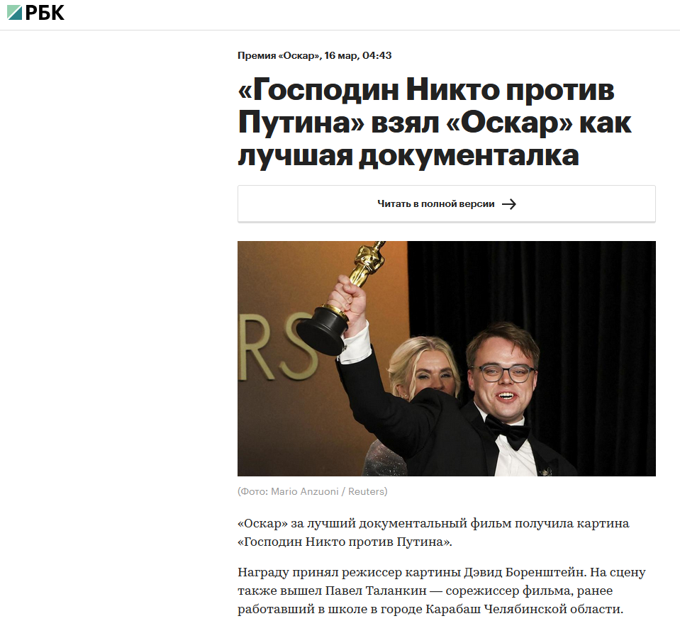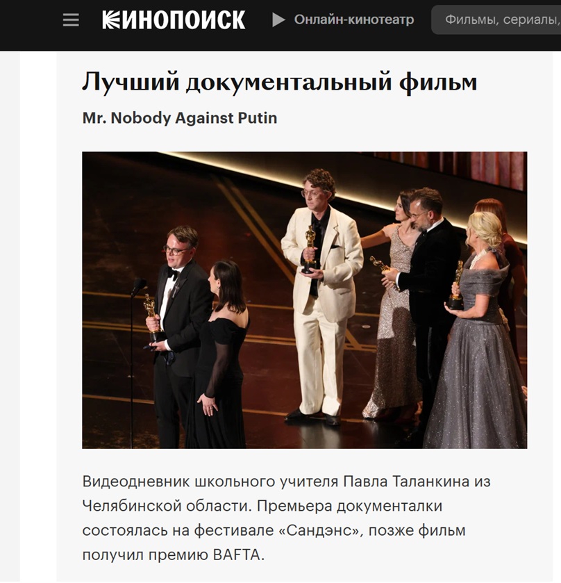 ПАВЕЛ ТАЛАНКИН ТОЛЬКО ЧТО ВЫГРАЛ ОСКАР ЗА ФИЛЬМ ГОСПОДИН НИКТО ПРОТИВ ПУТИНА