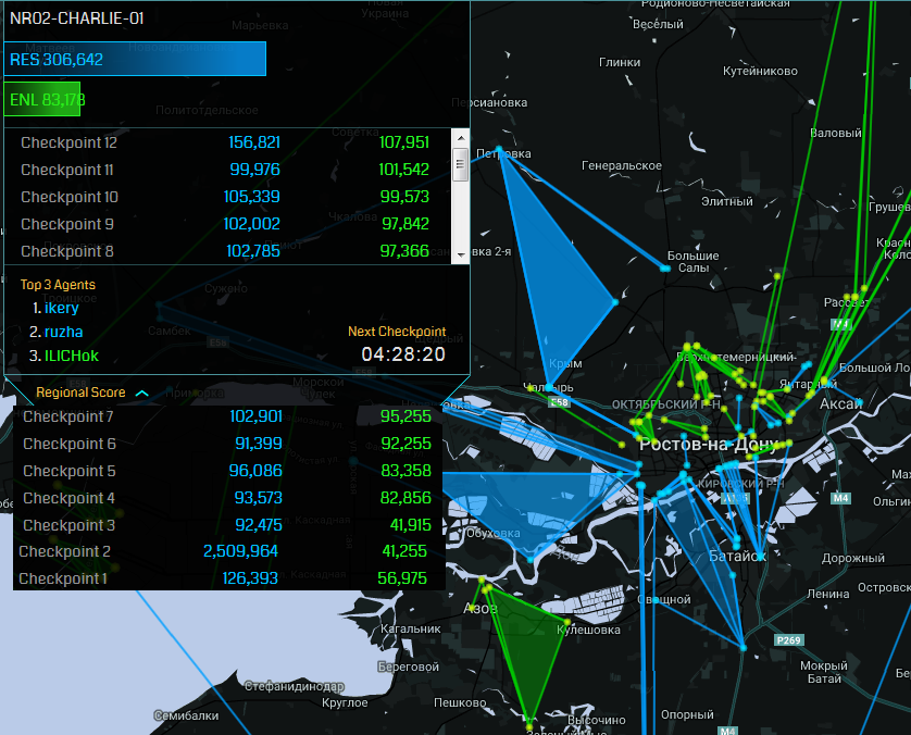 Кстати, судя по пику, у тебя в Ростове нормальный баланс сил. Резисты впереди в основном из-за накрытия города во втором чекпойнте. Но чисто статистически, да - вкатываться надо за зелёных.