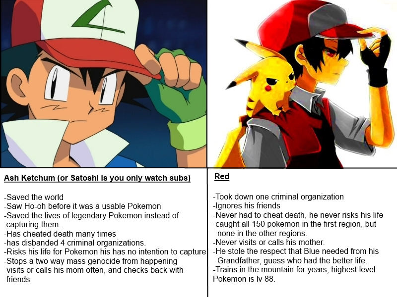 >>60852 Просто сравни, чего достиг Кетчум и чего достиг Ред. Один радостно путешествует по миру и налаживает отношения с разными поками - обычными и Легендарными, - пусть и регулярно всирая Лиги, но при этом держит связь с маман, профом и друзяшками из предыдущих регионов, а второй как победил Рокетов, выиграл Лигу и заполнил Кантодекс, забил на мамку и вообще всех, с кем он контактировал, засел на горе и сычует там по сей день.