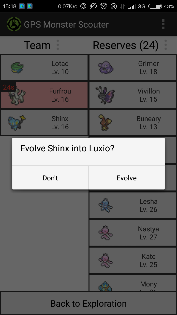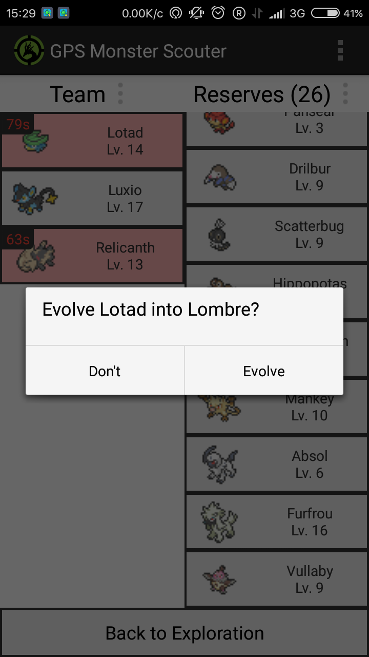 Отправил покемона за покеболом и убежал. Теперь он выделен тёмным, сделать с ним ничего нельзя. Прошло уже 2 дня. Вернуться на тот квадрат ещё не пробовал. Может, этот зелёный хатико до сих пор сидит там. Это была присказка, а теперь сказка начинается. Где можно посмотреть, что нужно для эволюции покемонов? Как догадываюсь, ему в инвентарь нужно положить соответствующий предмет и нажать специальную кнопку. Какой должен быть предмет - неизвестно. Смотрел во всяких энциклопедия покемонов: большинству нужно лишь получить определённый уровень. Попробовал эволюционировать mantyke - ему нужно поднять уровень при наличии remoraid в команде - не вышло, пробовал так несколько раз. Есть ли у анона советов мудрых?