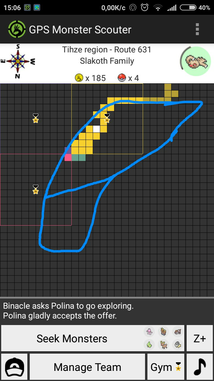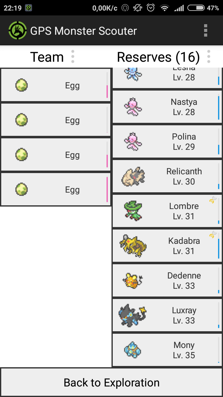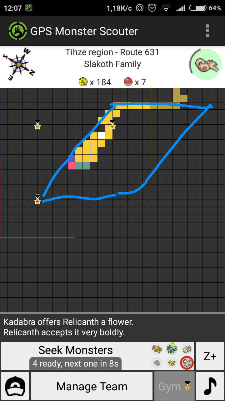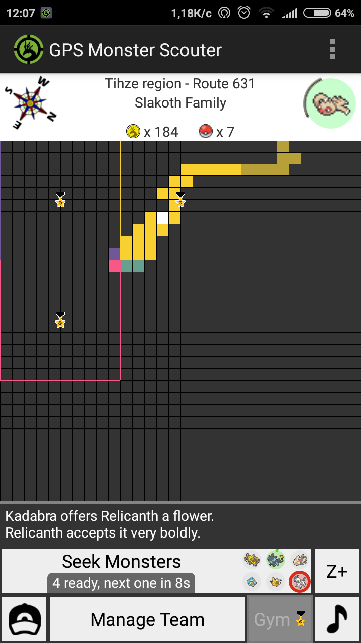 Кстати, опробовал отправлять на миссию покемона. Они двигаются медленно и, как мне кажется, возвращаются не кратчайшим путем, а идут по траектории движения. К тому же с низкой скоростью. Поэтому, если и ловить так, то только недоступные к которым не подойти и ждать их возвращения.