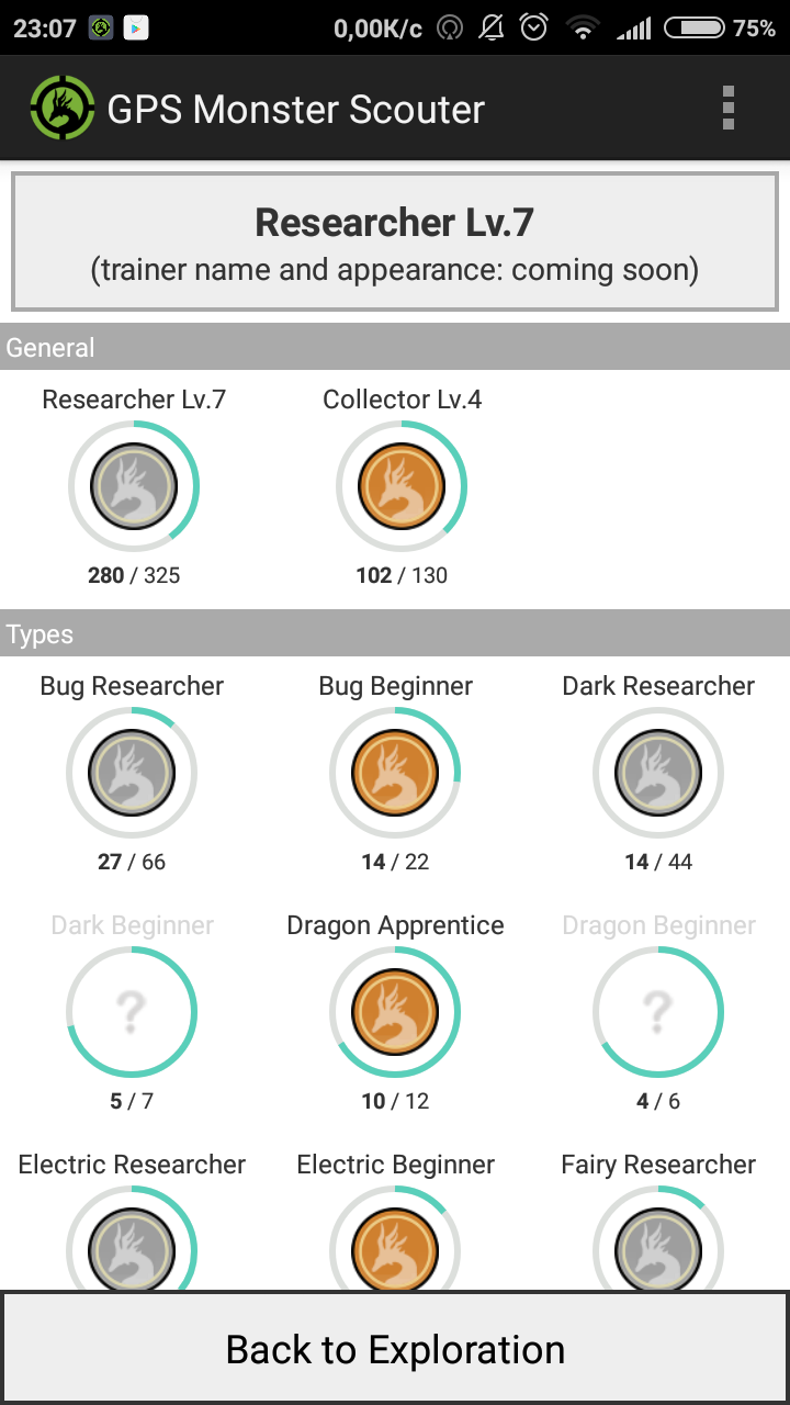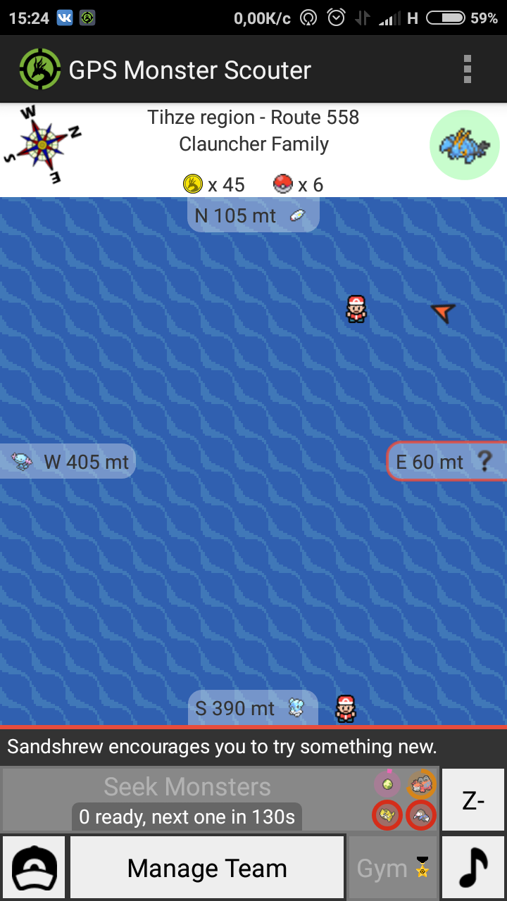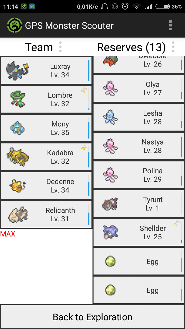 Мое третье сообщение буду писать сюда и дальше. Побегал по локациям. Что понял: 1) у разных "терраинов" - то есть 350-ти метровых квадратов разные бонусы к разным покемонам. И вроде бы в каждом квадрате спавнятся в основном те покемоны, которым бонус дает +10 или +20, редко бывает и -10, -20. 2) Боевка такая - (уровень покемона + бонус ). Если у твоего пока больше уровень, чем у вражеского, то вин, если меньше или равен (при условии, если при победе твой пок лвл-апнется, то он победит, если до нового лвл много экспы, то проиграет, хотя чет запутался, вроде бывали случаи и случайной победы, так что забудьте мное написанное) то проигрыш. За вин получаешь экспу покемону. 3) в команде основной может быть 6 покемонов, как я понял, к человекам, которых на каждой карте (вроде бы всегда) 2, при подходе можно воевать, но нужна команда из 6 я мудак, удалил одного покемона из-за отсутствия бонуса и не могу проверить 4) на карте есть по 2 человечка, как писал выше и иногда спавнится светяшка, к ним ведут синие стрелочки. Подойти к ним не смог, мешал ландшафт и частные земли, а подходить походу нужно вплотную.