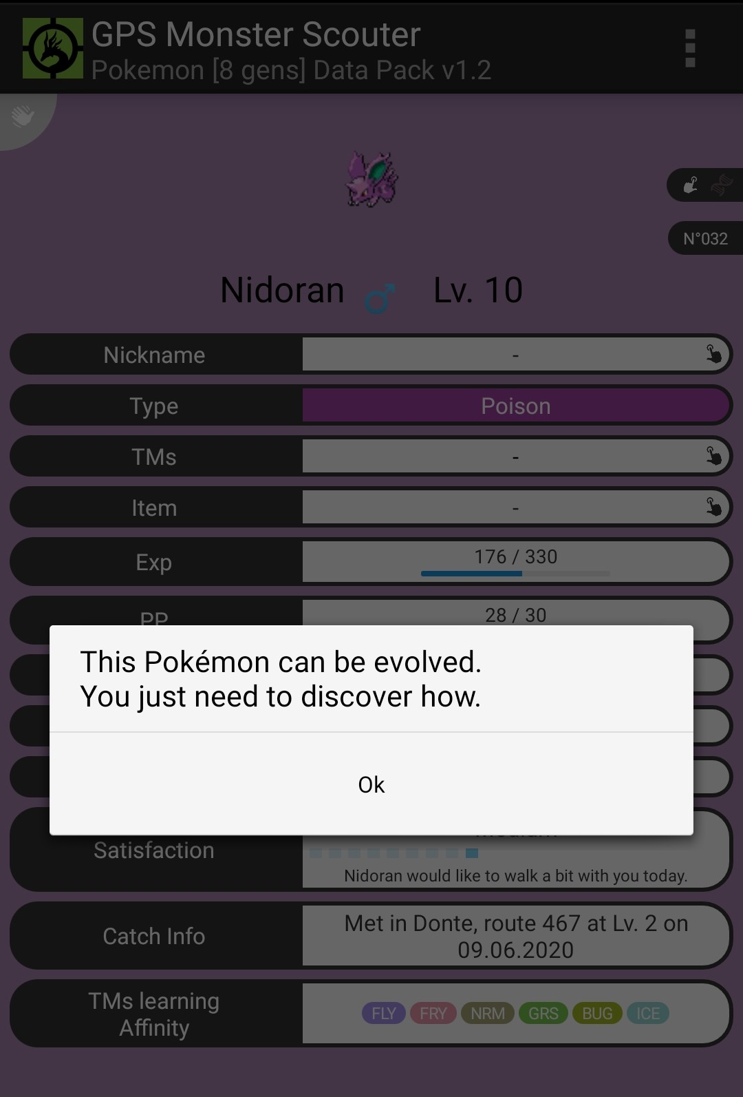 >>73680 Уровень, при котором будет возможна эволюция, ещё не достигнут. Конкретно для этого Нидорана нужен 16-й уровень, потом получившемуся Нидорино можно дать Moon Stone и сразу получить Нидокинга.