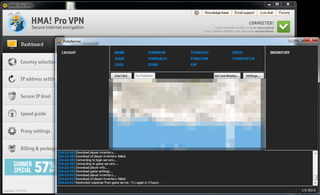 >>61898 PokeBot Starter, какой-то васян с четырепидора запилил. Штука полезная, на самом деле. Перезапускает бот через заданный промежуток времени, чтобы не отхватить бан за нон-стоп фарм. Да и если оставляешь на ночь, а бот ловит ошибку и останавливается, то эта фича возобновляет фарм без твоего участия.