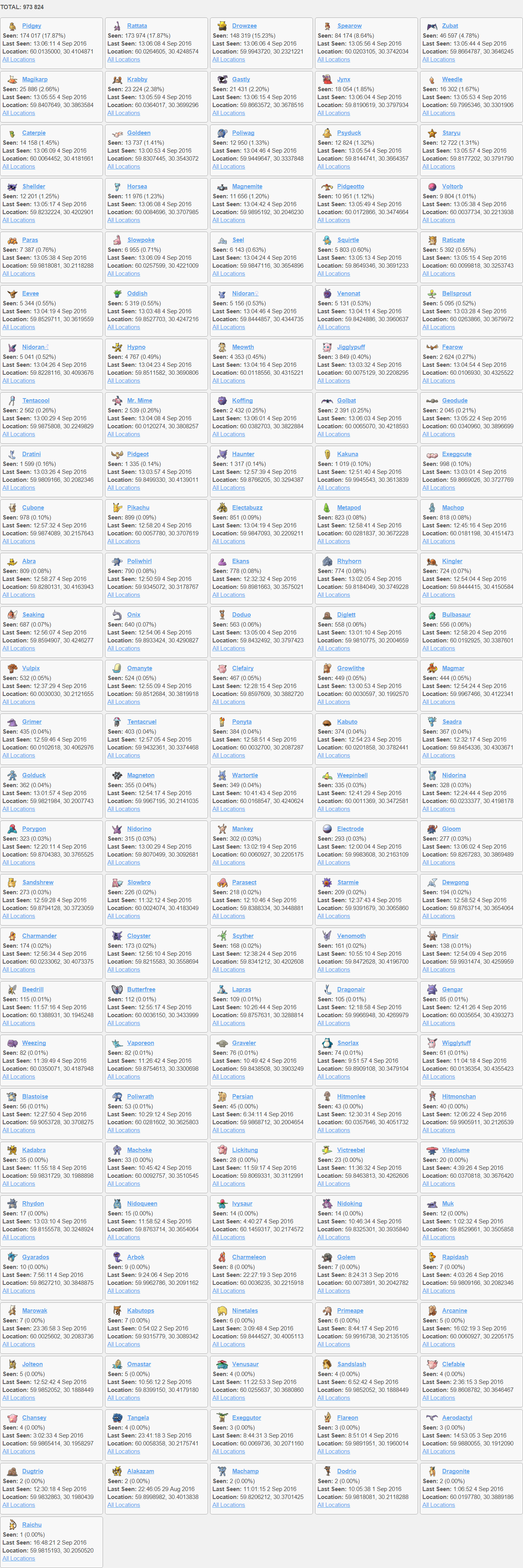 >>64312 Толсто. Я гуглил неоднократно — все рабочие карты, вытягивающие данные из игры, закрыты. Остались только те, где юзеры вручную забивают места, где видели того или иного покемона.