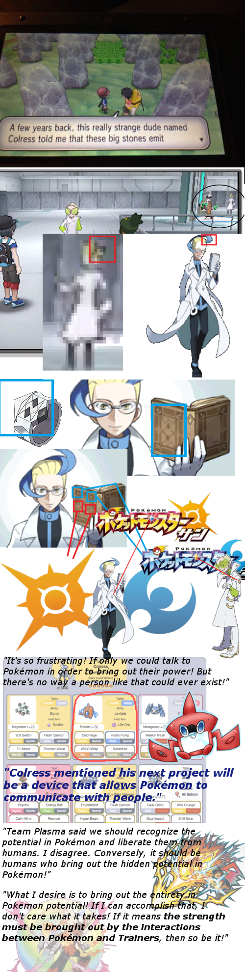И если что, то Латиас маскировалась под реального человека. Плюс являлась разумным покемоном. Ультрабисты не изучены, возможно не имеют сознания, и UB-01 постоянно меняет форму, что сделало бы затруднительным работу ассистентом профессора.